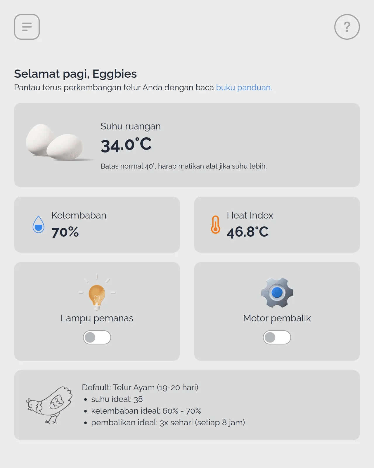 eightcubator is an IoT-based egg incubator that can be controlled via the website and is a school team project. eightcubator is taken from the word 8 (our group, group 8) and egg incubator. done using php native and mysql